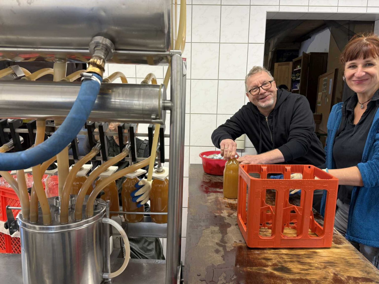 Kurze Zeit später ging es gemeinsam zur Mosterei nach Ubbendorf, wo die Ernte in köstlichen Apfelsaft verwandelt wurde. Das Ergebnis: ein echtes Gemeinschaftsprodukt, das nicht nur schmeckt, sondern uns auch mit Stolz erfüllt!
